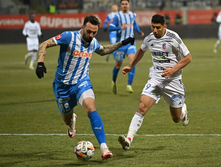 Vasile Mogos si Enzo Adrian Lopez in meciul de fotbal dintre FC Botosani si Universitatea Craiova, contand pentru Superliga Superbet, desfasurat pe Stadionul Municipal din Botosani, sambata 22 februarie 2025. © FOTO: Tudy/SPORT PICTURES