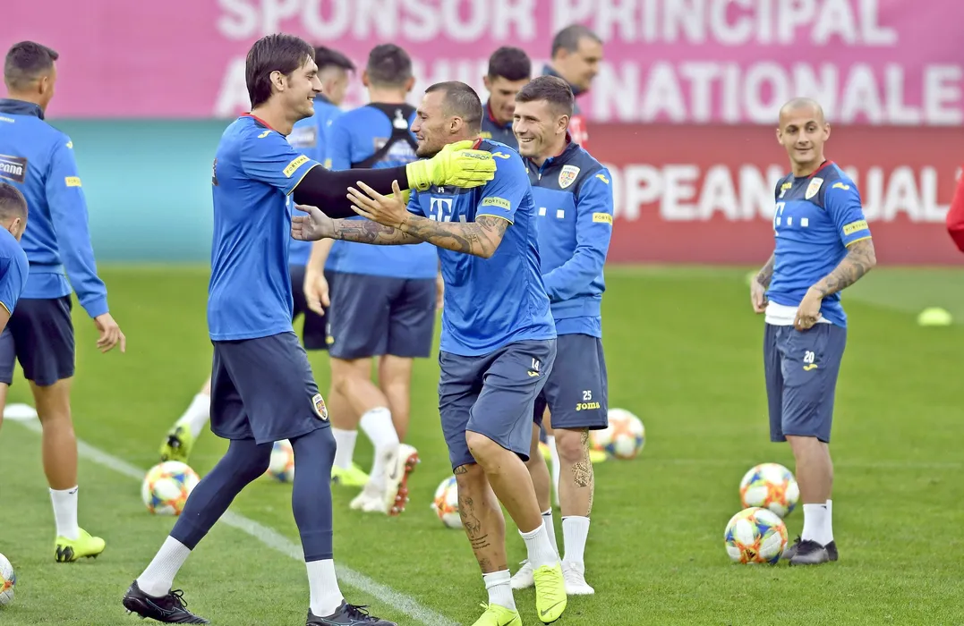 Fotbalistii Romaniei Ciprian Tatarusanu si Vasile Mogos se antreneaza inaintea meciului impotriva Norvegiei, contand pentru Preliminariile Campionatului European 2020, desfasurat pe Arena Nationala din Bucuresti, luni 14 octombrie 2019. © FOTO:Razvan Pasarica/SPORT PICTURES