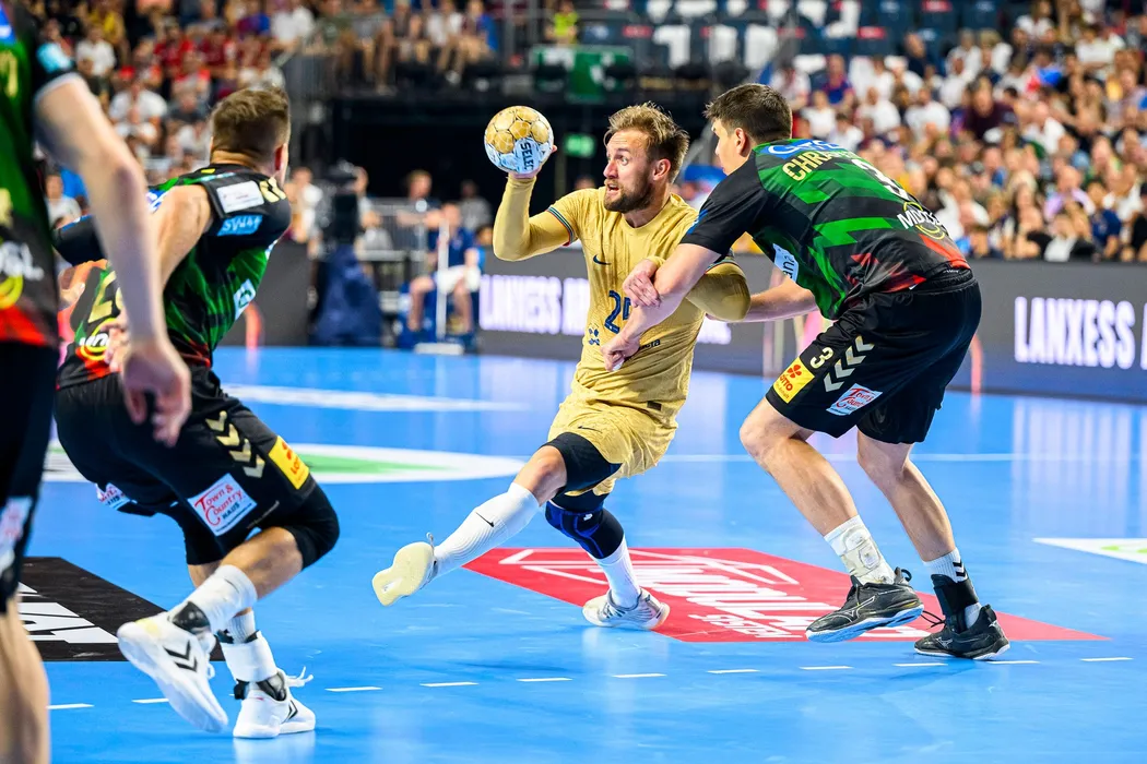 Koeln, Deutschland 17. Juni 2032: Handball EHF CL Final4 - 22/23 - Halbfinale - SC Magdeburg - Barca v. li. im Zweikampf Luka Cindric Barcelona und Piotr Chrapkowski SC Magdeburg Koeln Lanxess Arena Nordrhein-Westfalen Deutschland *** Koeln, Germany 17 June 2032 Handball EHF CL Final4 22 23 Semifinal SC Magdeburg Barca v li in duel Luka Cindric Barcelona and Piotr Chrapkowski SC Magdeburg Koeln Lanxess Arena Nordrhein Westfalen Germany,Image: 783945298, License: Rights-managed, Restrictions: Credit images as "Profimedia/ IMAGO", Model Release: no