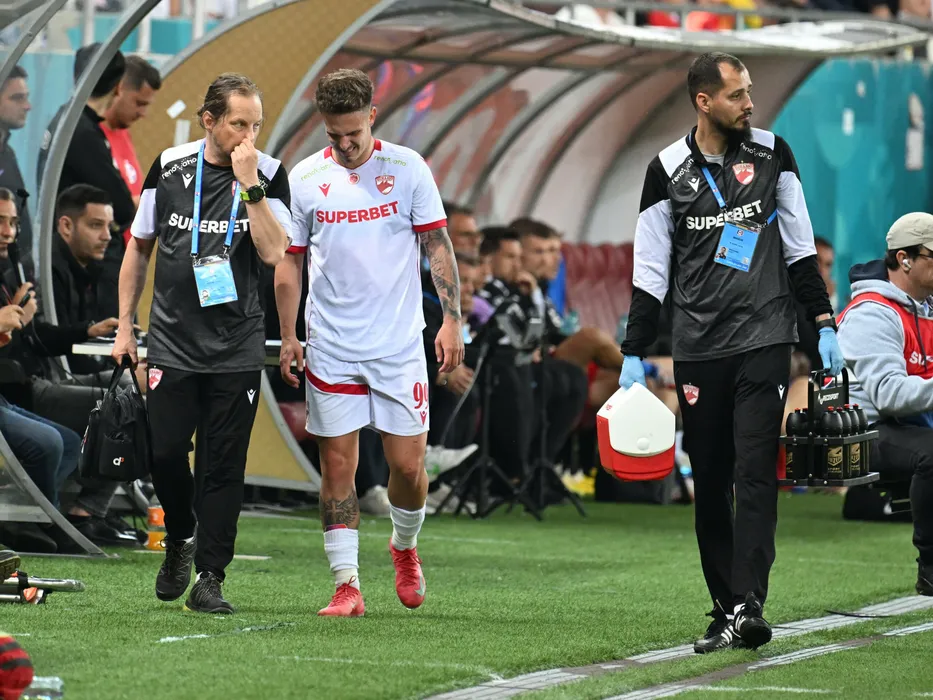 Alexandru Mihai Constantin Pop paraseste terenul din meciul de fotbal dintre FCSB si Dinamo Bucuresti, din cadrul Play off-ului Superligii Superbet, desfasurat pe Arena Nationala din Bucuresti, luni 5 mai 2025. © FOTO:Razvan Pasarica/SPORT PICTURES