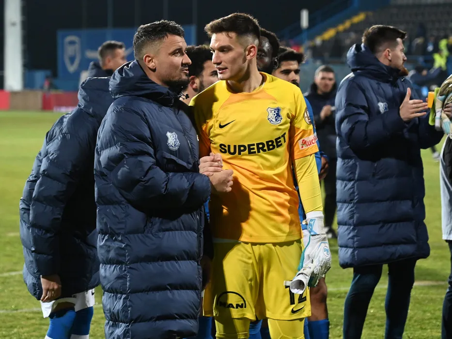 Constantin Valentin Budescu discuta cu Marian Mihai Aioani dupa meciul de fotbal dintre Farul Constanta si Rapid Bucuresti, contand pentru Superliga Superbet, desfasurat pe Stadionul central al Academiei Gheorghe Hagi din Ovidiu, miercuri 20 decembrie 2023. © FOTO:Razvan Pasarica/SPORT PICTURES