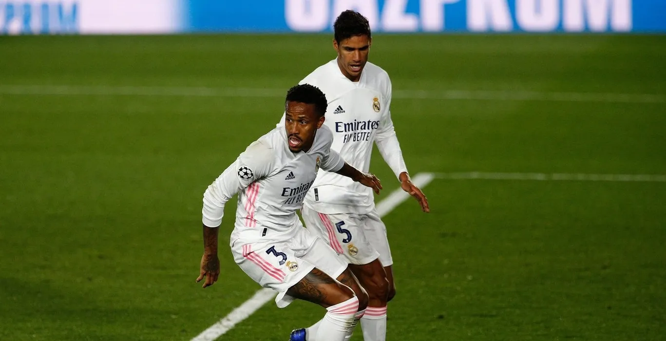 Eder Gabriel Militao and Raphael Varane of Real Madrid
