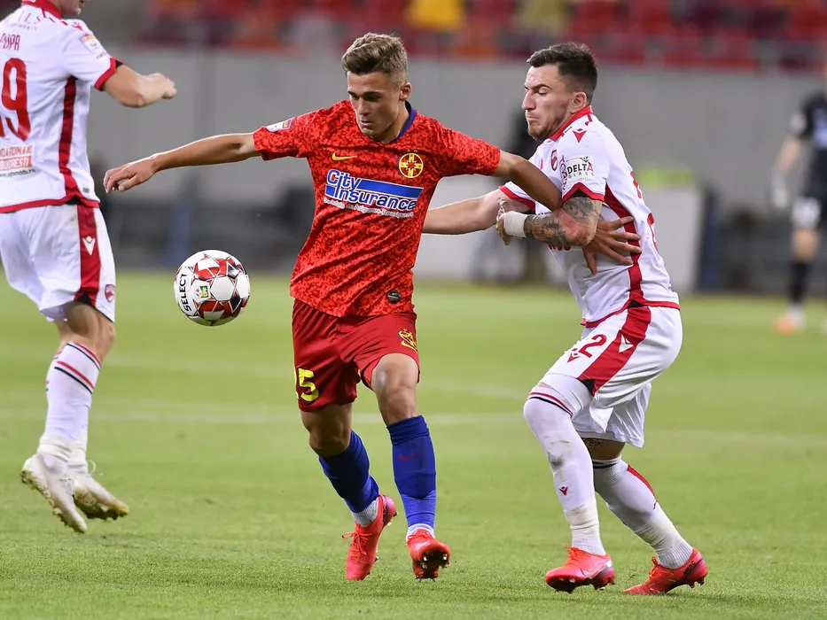 Ovidiu Ioan Perianu si Deian Cristian Sorescu in meciul de fotbal dintre FCSB si Dinamo Bucuresti, contand pentru returul semifinalei Cupei Romaniei, disputat fara spectatori pe Arena Nationala din Bucuresti, miercuri 8 iulie 2020. © FOTO:Razvan Pasarica/SPORT PICTURES
