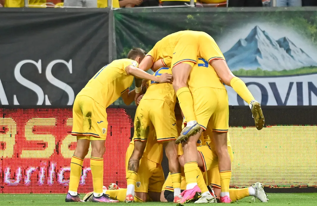 Bucurie a fotbalistilor romani dupa un gol marcat in meciul de fotbal dintre Romania si Israel, din cadrul preliminariilor Campionatului European 2024, desfasurat pe Arena Nationala, sambata 9 septembrie 2023. © FOTO:Razvan Pasarica/SPORT PICTURES