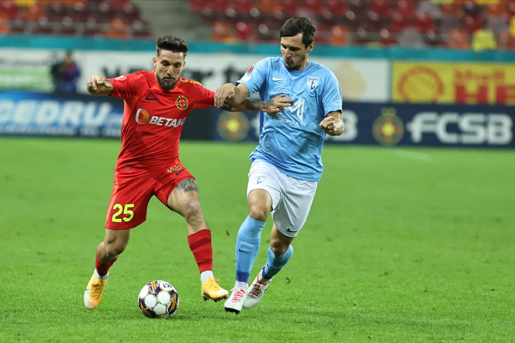 Alexandru Mihail Baluta și Ljuban Crepulja în meciul de fotbal dintre FCSB și FC VOLUNTARI, contând pentru SUPERLIGA SUPERBET, desfășurat pe Stadionul Arena Națională din București, duminică 22 octombrie 2023. © FOTO: Gică FLUȘTER/SPORT PICTURES