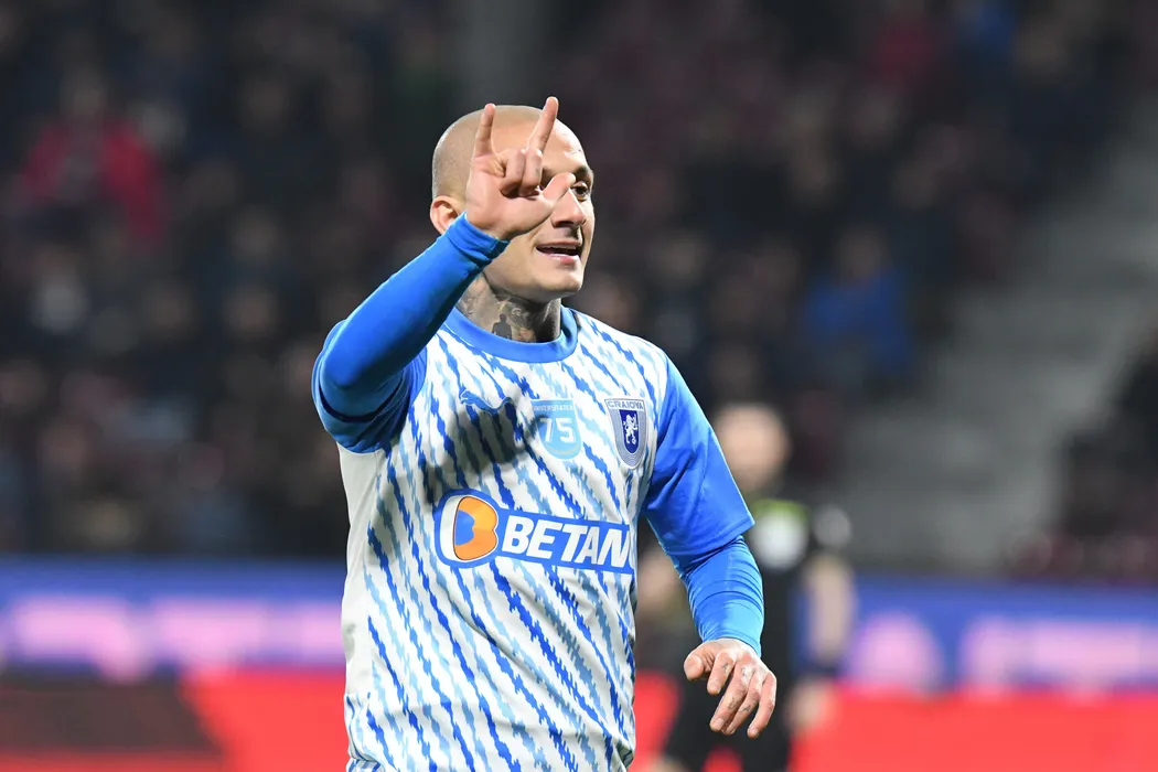 Ionuț Alexandru Mitriță după marcarea unui gol în meciul de fotbal dintre FC CFR 1907 Cluj si Universitatea Craiova, contând pentru Superliga Superbet, desfășurat pe Stadionul Dr.Constantin Rădulescu din Cluj-Napoca, sâmbătă 16 martie 2024. © FOTO: Flaviu BUBOI/SPORT PICTURES
