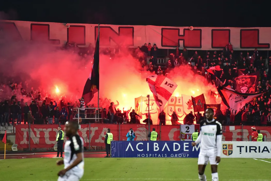 February 28, 2015: The supporters of Dinamo Bucharest during the Liga I game between FC Dinamo Bucharest ROU and FC Universitatea Cluj ROU at ''Dinamo'' Stadium, Romania ROU. Catalin Soare / www.sportaction.ro,Image: 717220524, License: Rights-managed, Restrictions: This content is intended for editorial use only. For other uses, additional clearances may be required.