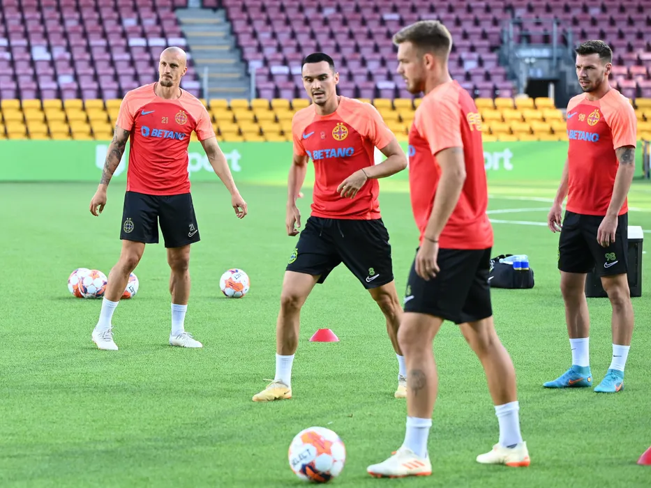 Fotbalistii de la FCSB Vlad Iulian Chiriches, Adrian Gheorghe Sut si Andrei Ioan Cordea la antrenamentul oficial de dinaintea meciului impotriva lui FC Nordsjælland, din cadrul UEFA Europa Conference League, desfasurat pe Stadionul Right to Dream Park din Farum, miercuri 16 august 2023. © FOTO:Razvan Pasarica/SPORT PICTURES