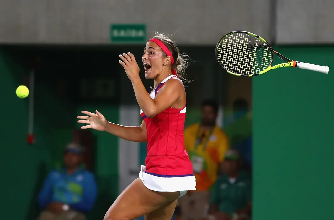 Monica Puig of Puerto Rico reacts after defeating Angelique Kerber of Germany in the women's singles gold medal match at the Rio Summer Olympics.
