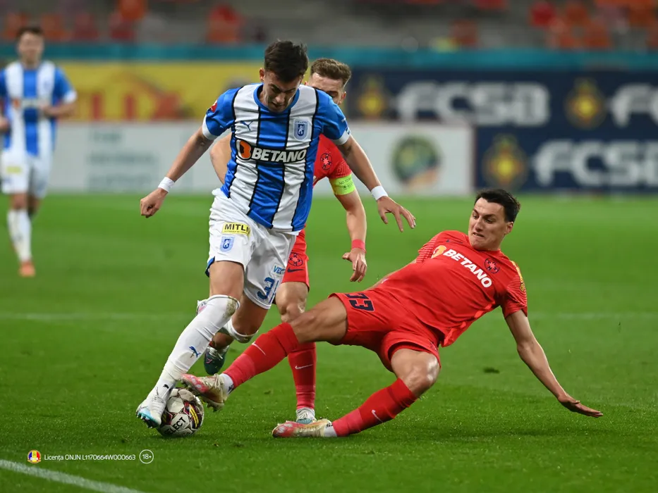 Mihai Alexandru Isfan si Risto Radunovic in meciul de fotbal dintre FCSB si Universitatea Craiova, contand pentru Play-off-ul Superligii Superbet, desfasurat pe Arena Nationala din Bucuresti, sambata 18 martie 2023. Bucuresti *** Mihai Alexandru Isfan and Risto Radunovic in the football match between FCSB and Craiova University, counting for the Superbet Superligi Play off, held at the National Arena in Bucharest, Saturday March 18, 2023 Bucharest Copyright: xRazvanxPasarica/SPORTxPICTURESx