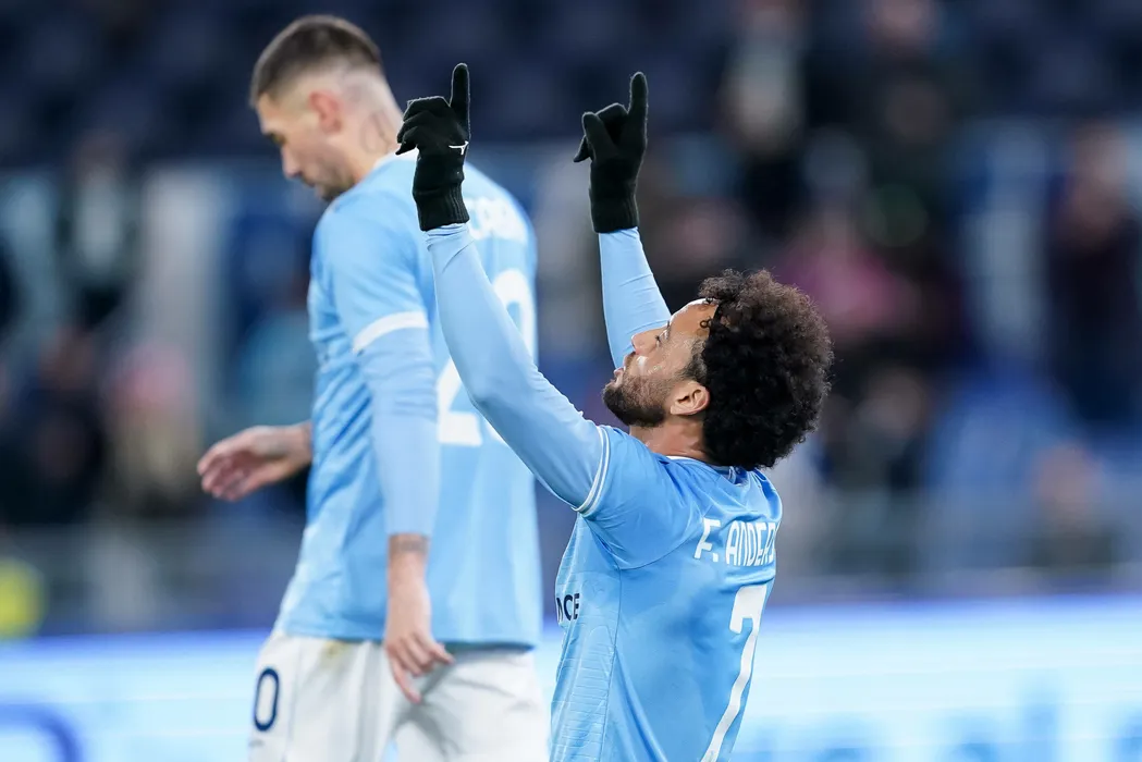 SS Lazio v Bologna FC - Coppa Italia Felipe Anderson of SS Lazio celebrates after scoring first goal during the Coppa Italia match between SS Lazio and Bologna FC at Stadio Olimpico, Rome, Italy on 19 January 2023. Rome Rome Italy PUBLICATIONxNOTxINxFRA Copyright: xGiuseppexMaffiax originalFilename:maffia-sslaziov230119_npGfN.jpg