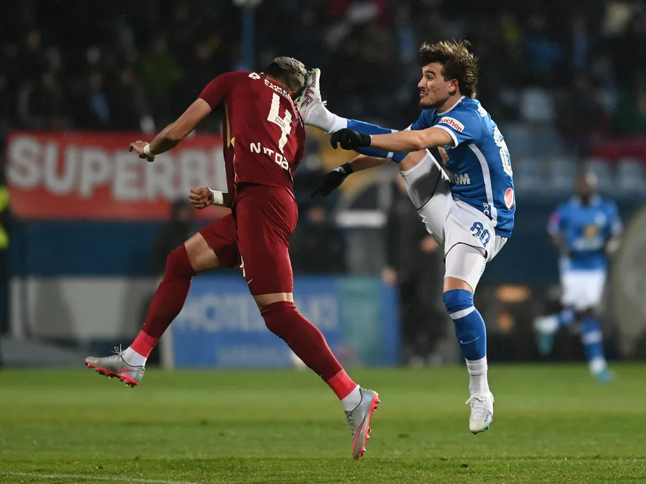 Alexi Paul Pitu il loveste in cap pe Cristian Marian Manea in meciul de fotbal dintre Farul Constanta si CFR Cluj, contand pentru Superliga Superbet, desfasurat pe Stadionul central al Academiei Gheorghe Hagi din Ovidiu, luni 23 ianuarie 2023. © FOTO:Razvan Pasarica/SPORT PICTURES