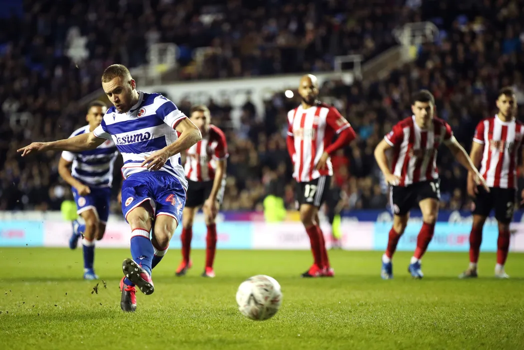 03 March 2020, England, Reading: Reading's George Puscas scores his side's first goal during the English FA Cup fifth round soccer match between Reading and Sheffield United at the Madejski Stadium. Photo: Nick Potts/PA Wire/dpa