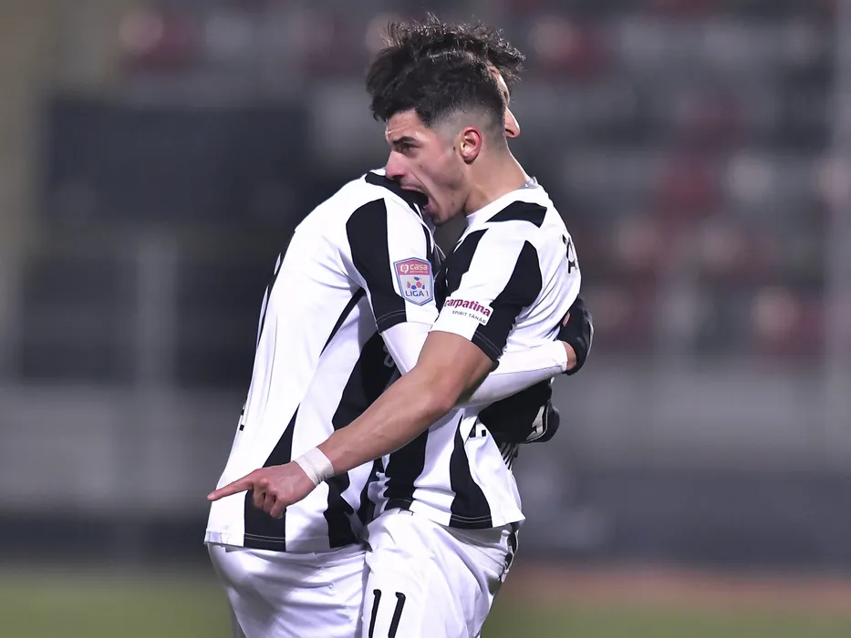 Valentin Gheorghe se bucura dupa un gol marcat alaturi de Albert Tivadar Stahl in meciul de fotbal dintre Astra Giurgiu si Dinamo Bucuresti, contand pentru Liga 1 Casa Pariurilor, desfasurat fara spectatori pe Stadionul Marin Anastasovici din Giurgiu, duminica 21 februarie 2021. © FOTO:Razvan Pasarica/SPORT PICTURES