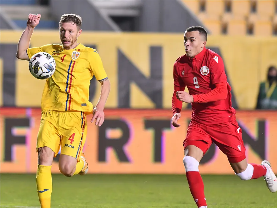 Bogdan Mitrea si Max Ebong in meciul de fotbal dintre Romania si Belarus, contand pentru Liga Natiunilor, desfasurat fara spectatori pe Stadionul Ilie Oana din Ploiesti, miercuri 11 noiembrie 2020. © FOTO:Razvan Pasarica/SPORT PICTURES