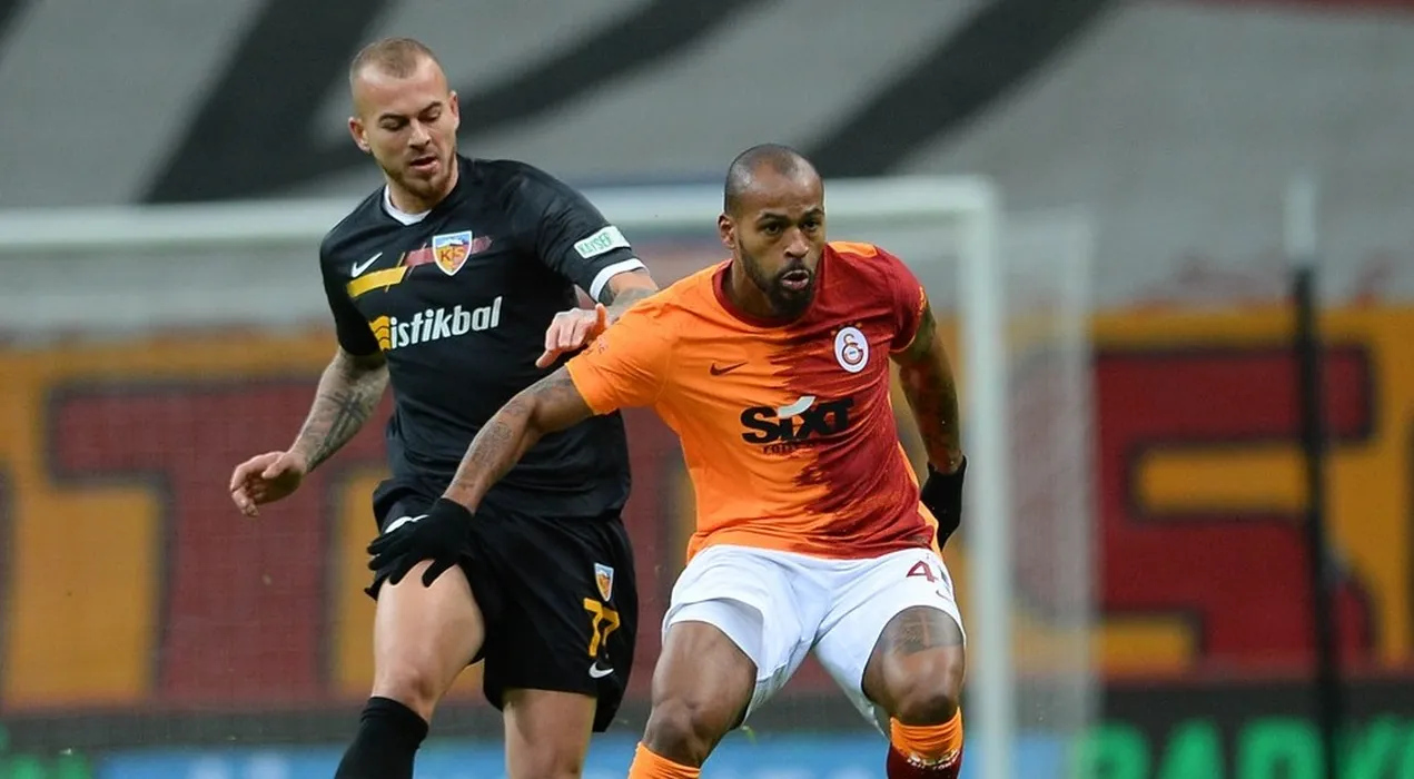 Marcao of Galatasaray and Denis Alibec (L) of Kayserispor during the Turkish Super league football match between Galatasaray and Kayserispor at Turk Telekom Arena Stadium in Istanbul , Turkey on November 24 , 2020.,Image: 570880665, License: Rights-managed, Restrictions: Not available for publication in Turkey., Model Release: no