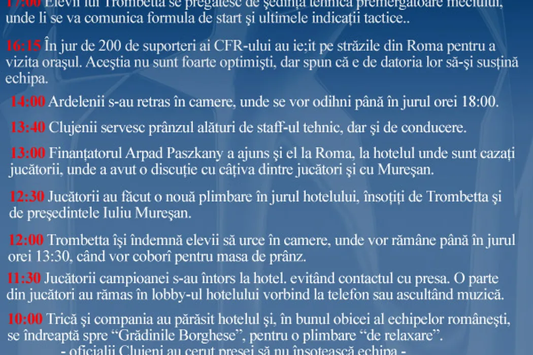 Vezi aici ce fac CFR-iștii „minut cu minut” înainte de meci!
