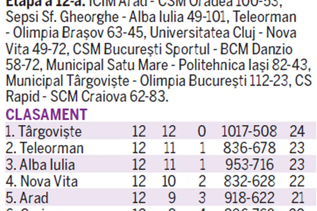 Vezi ultimele rezultate ale etapei** și clasamentul la zi în Divizia A la baschet feminin!