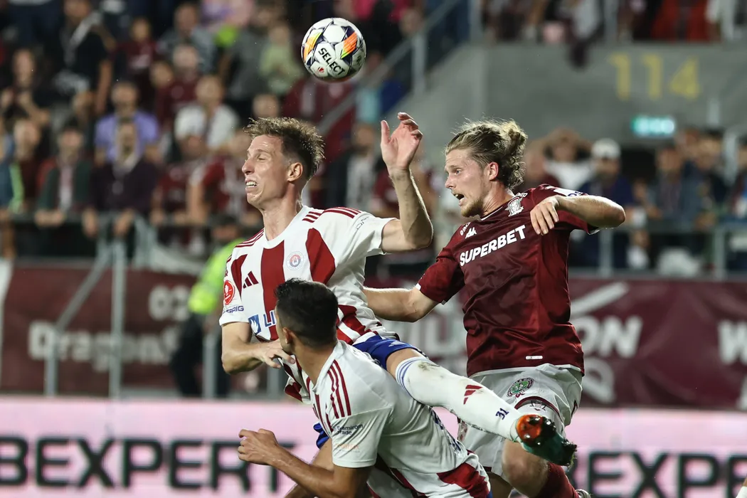 Diego Zivulic si Xin Ghislaine R. Emmers in meciul de fotbal dintre Rapid Bucuresti si Otelul Galati, din cadrul Superligii Superbet, desfasurat pe Superbet Arena-Giulesti din Bucuresti, sambata 28 septembrie 2024. © FOTO:Gheorghe Fluster/SPORT PICTURES