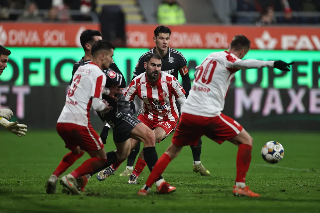 Benjamin Andre P Van Durmen, Din Alomerovic si Mihai Alexandru Dobre in meciul de fotbal dintre UTA Arad si FC Rapid Bucuresti, contand pentru Superliga Superbet, desfasurat pe Arena Francisc Neuman din Arad, luni 26 ianuarie 2026. © FOTO:Sebastian Tataru/SPORT PICTURES