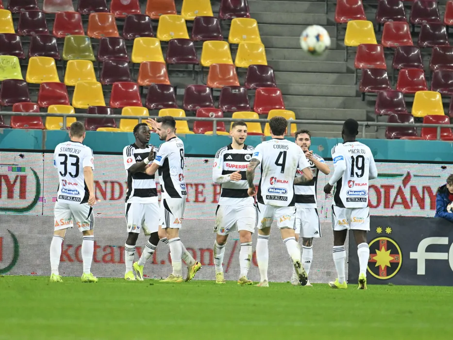 Bucurie a fotbalistilor clujeni Oucasse N'Dayanthane Mendy, Jovo Lukic, Andrej Fabry si Dorin Marian Codrea dupa un gol marcat in meciul de fotbal dintre FCSB si Universitatea Cluj, contand pentru Superliga Superbet, desfasurat pe Arena Nationala din Bucuresti, sambata 7 martie 2026. © FOTO:Razvan Pasarica/SPORT PICTURES