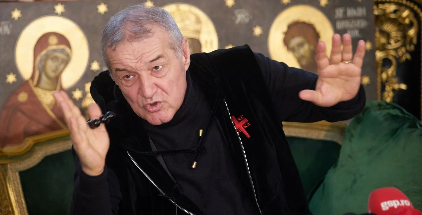 George Becali, the owner of the Romanian soccer team FCSB, announces that this is the last press conference he will ever hold, that he is retiring from football and wants to sell the team, unhappy with the way was refereed his team's last match and about the way the Romanian Football Federation manages Romanian football, saying "I can not fight with all the tyranny in Romania, I can not fight, especially as they have the state powers, which are, I fought I did jail, I give glory to the Lord that I did only so much that I did not realize what I got myself into, I went into the fire as a fool, of' goodbye, I withdrew, I no longer have business with them" during a press conference held in his palace in Bucharest. George Becali to Sell FCSB Soccer Team, Bucharest, Romania - 24 Apr 2023,Image: 771643246, License: Rights-managed, Restrictions: , Model Release: no