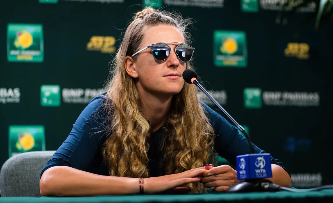 Victoria Azarenka of Belarus talks to the media after the quarter-finals of the 2021 BNP Paribas Open WTA 1000 tennis tournament BNP Paribas Open, Tennis, Day 8, Indian Wells Tennis Garden, California, USA - 13 Oct 2021,Image: 637957817, License: Rights-managed, Restrictions: , Model Release: no, Credit line: Profimedia