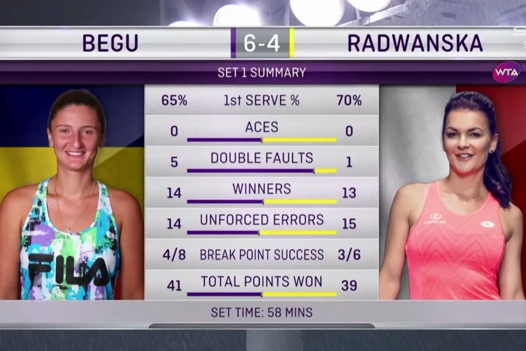 Victorie mare pentru Irina Begu: a învins-o în minimum de seturi pe Agnieszka Radwanska, după un meci întrerupt de două ori din cauza ploii, în momente favorabile româncei! Desfășurarea, pas cu pas, a partidei