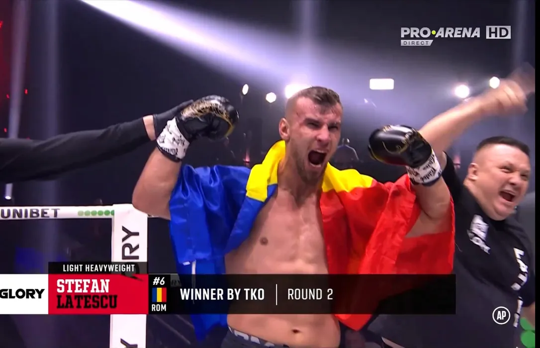 Victorie uriașă pentru Ștefan Lătescu, în Glory! Românul l-a făcut KO pe marocanul Ibrahim El Bouni și poate lupta pentru titlul mondial