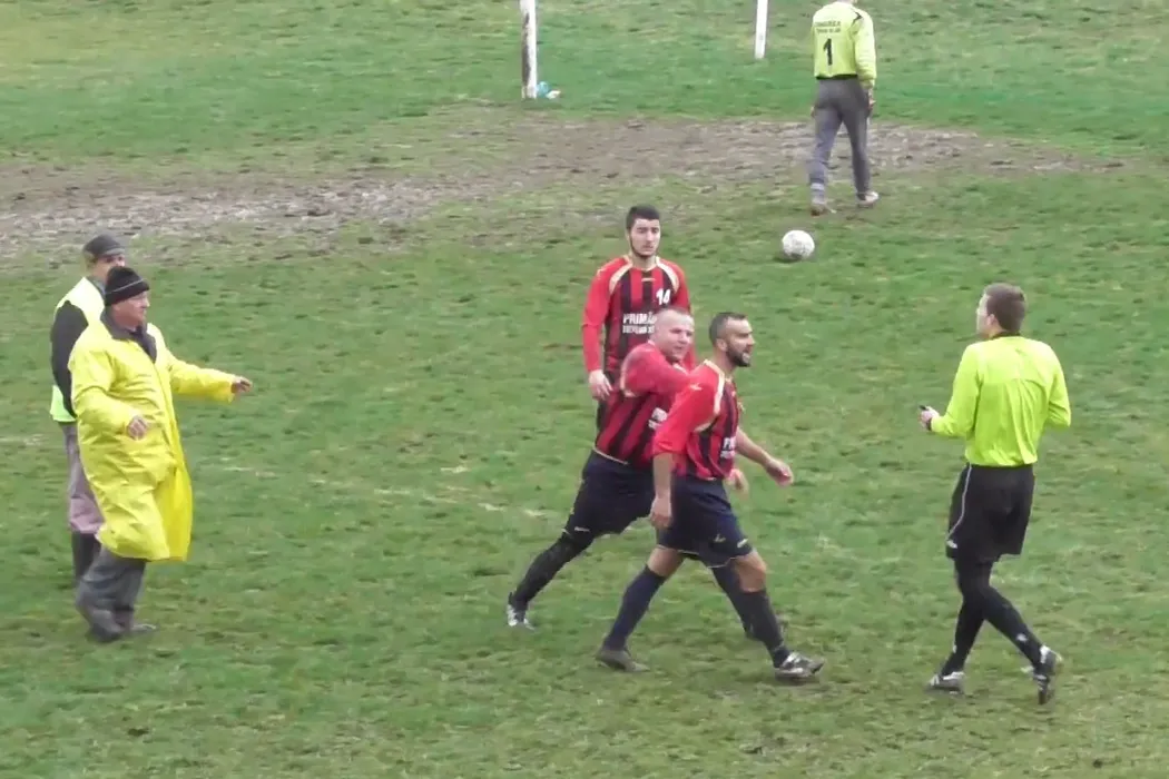 VIDEO COMEDIE | Un gol fantomă marcat în liga a patra, la Tritenii de Jos, a declanșat un circ. Șeful AJF despre arbitru: ‘Un dobitoc’. Protestul inedit al gazdelor și ce spune marcatorul