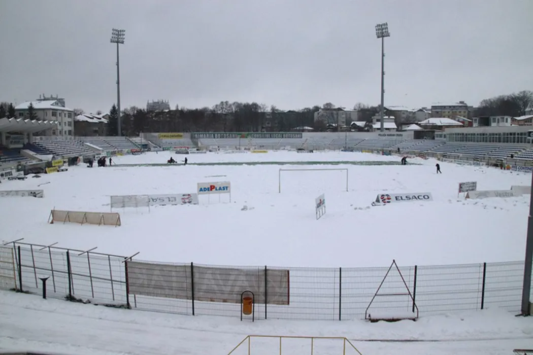 VIDEO | Deszăpezire contra cronometru! Terenul unde se joacă FC Botoșani – FCSB este acoperit cu zăpadă: „Nu ne putem pune cu natura”. S-a făcut apel la suporteri