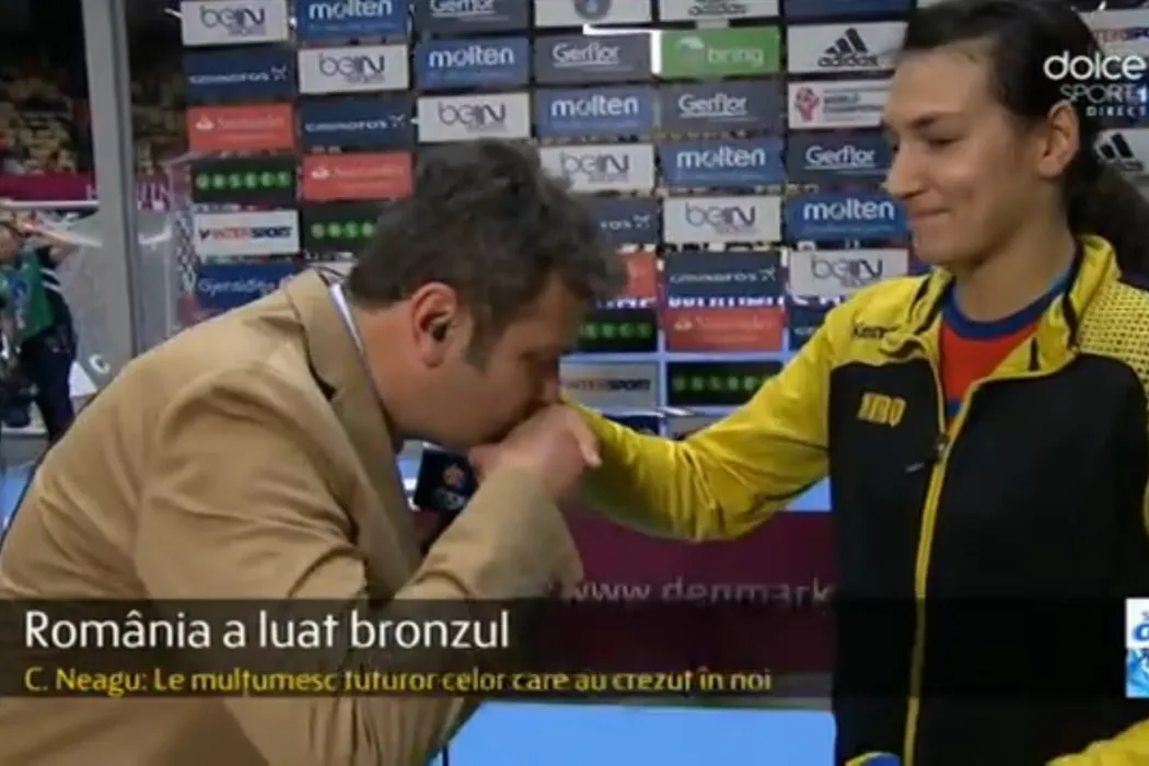 VIDEO | Gestul emoționant al comentatorului Cosmin Băleanu în fața Cristinei Neagu, cea mai bună jucătoare de la Mondiale. „Dă-mi voie să-ți sărut mâna!”