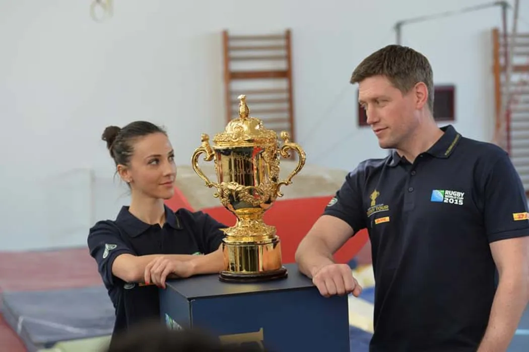 VIDEO REPORTAJ | Andreea Răducan l-a placat cu o oră de gimnastică pe unul dintre rugbyștii legendari, irlandezul Ronan O’Gara. Ce spune Andreea despre primele pase cu balonul oval