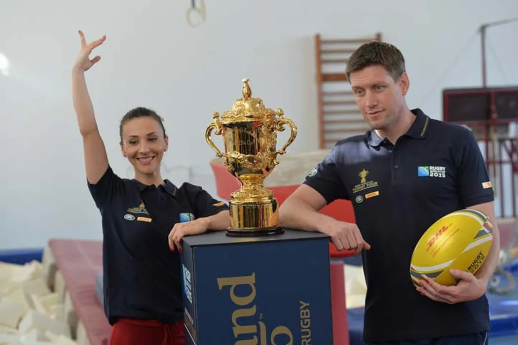 VIDEO REPORTAJ | Andreea Răducan l-a placat cu o oră de gimnastică pe unul dintre rugbyștii legendari, irlandezul Ronan O’Gara. Ce spune Andreea despre primele pase cu balonul oval