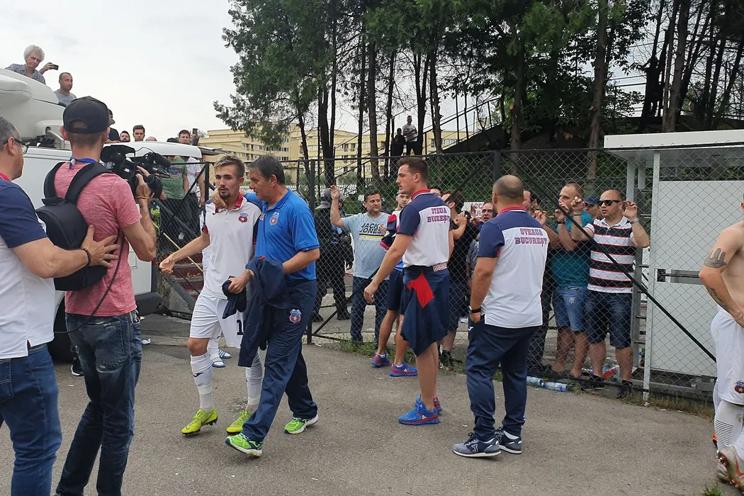 VIDEO și FOTO | Imaginile durerii la Steaua, după ratarea promovării! Jucători în genunchi, fotbaliști dezbrăcați în fața peluzei și momente tensionate în afara stadionului
