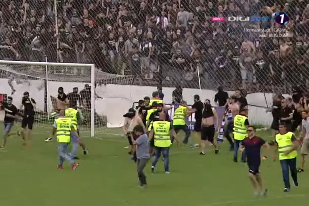 VIDEO și FOTO | Suporterii Stelei nu au suportat că au ratat promovarea! Haos pe terenul din Regie, imediat după fluierul de final al arbitrului: jucătorii lui Carmen au fugit de frică