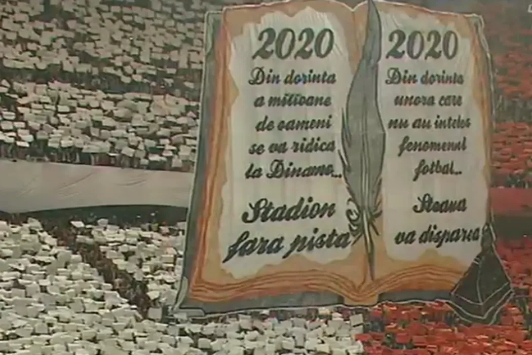 VIDEO&FOTO FABULOS | O nouă coregrafie incredibilă făcută de ultrașii lui Dinamo. Meciul a fost întrerupt aproape 10 minute