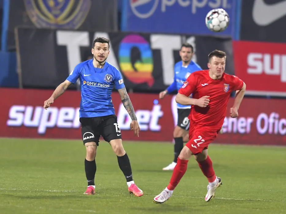 Cosmin Gabriel Matei si Vadim Rata in meciul de fotbal dintre FC Viitorul Constanta si Chindia Targoviste, din cadrul Ligii 1 Casa Pariurilor, desfasurat fara spectatori pe Stadionul Central al Academiei Gheorghe Hagi din Ovidiu, miercuri 17 martie 2021. © FOTO:Razvan Pasarica/SPORT PICTURES