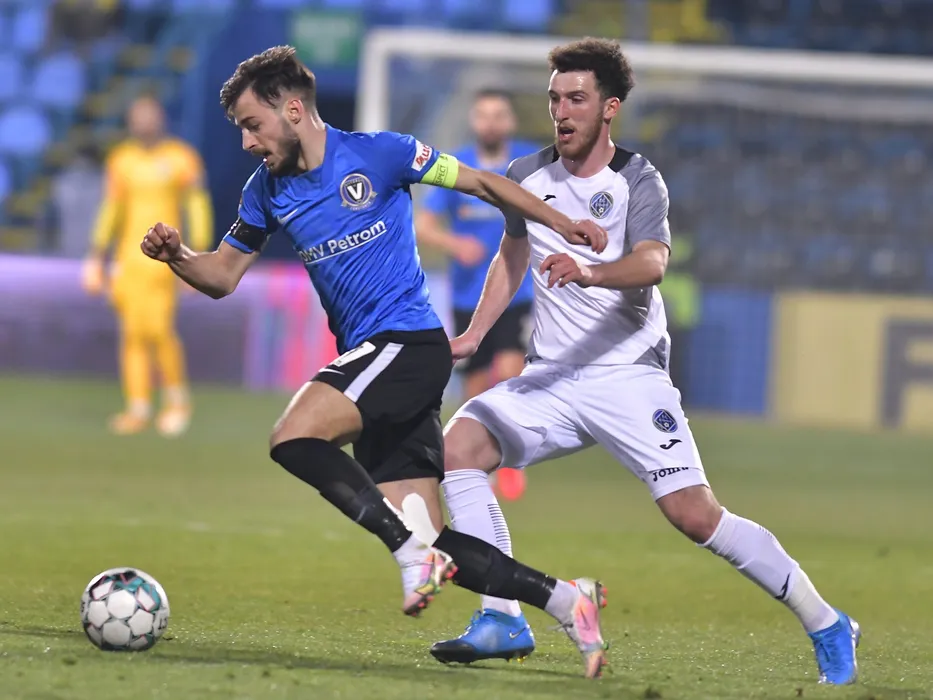 Virgil Andrei Ciobanu si Razvan Andronic in meciul de fotbal dintre FC Viitorul Constanta si Academica Clinceni, din cadrul Ligii 1 Casa Pariurilor, desfasurat fara spectatori pe Stadionul Central al Academiei Gheorghe Hagi din Ovidiu, vineri 5 martie 2021. © FOTO:Razvan Pasarica/SPORT PICTURES