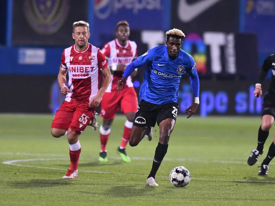 Ely Ernesto Lopes Fernandes si Janusz Krzysztof Gol in meciul de fotbal dintre FC Viitorul Constanta si Dinamo Bucuresti, contand pentru Liga 1 Casa Pariurilor, desfasurat fara spectatori pe Stadionul Central al Academiei Gheorghe Hagi din Ovidiu, duminica 8 noiembrie 2020. © FOTO:Razvan Pasarica/SPORT PICTURES