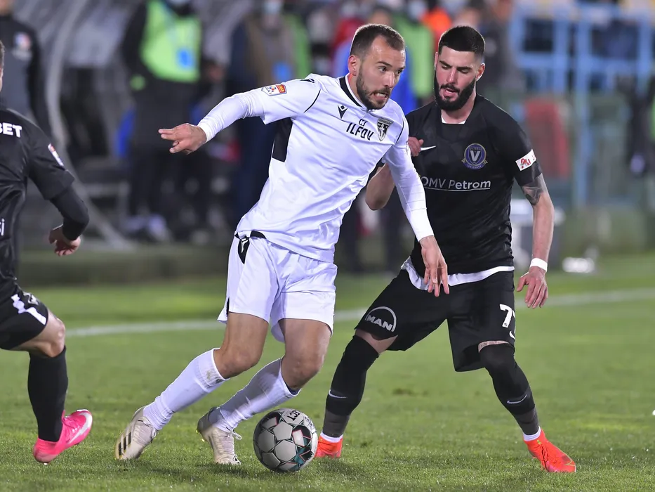 Viktor Angelov si Radu Stefanita Boboc in meciul de fotbal dintre FC Voluntari si FC Viitorul Constanta, contand pentru Play-off-ul Ligii 1 Casa Pariurilor, desfasurat fara spectatori pe Stadionul Anghel Iordanescu din Voluntari, luni 26 aprilie 2021. © FOTO:Razvan Pasarica/SPORT PICTURES