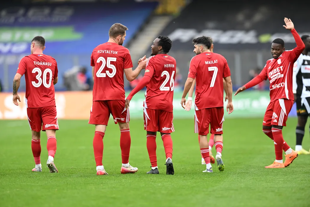 Fotbalistii botoseneni dupa un gol marcat de Hervin Ongenda in meciul de fotbal dintre FC Universitatea Cluj si FC Botosani, contand pentru Superliga Superbet, desfasurat pe Cluj Arena din Cluj-Napoca, sambata 18 octombrie 2025. © FOTO:Flaviu Buboi/SPORT PICTURES