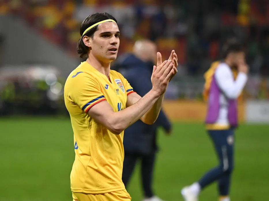 Ianis Hagi saluta publicul dupa meciul amical de fotbal dintre Romania si Irlanda de Nord, desfasurat pe Arena Nationala, vineri 22 martie 2024. Bucuresti *** Ianis Hagi greets the public after the friendly football match between Romania and Northern Ireland, held at the National Arena, Friday 22 March 2024 Bucharest Copyright: xRazvanxPasarica/SPORTxPICTURESx,Image: 858949557, License: Rights-managed, Restrictions: Credit images as "Profimedia/ IMAGO", Model Release: no