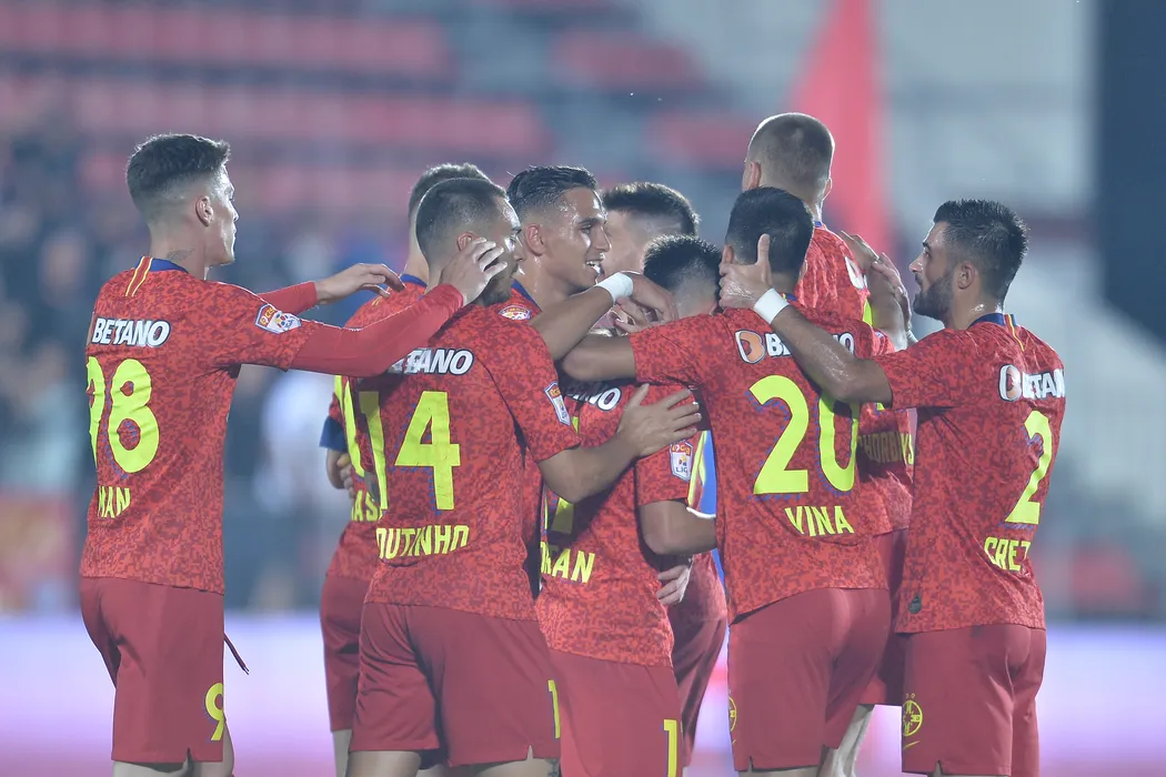 Jucatorii formatiei FCSB reactioneaza dupa inscrierea unui gol in timpul meciului de fotbal contra echipei Metaloglobus Bucuresti din saisprezecimile Cupei Romaniei, disputat pe stadionul Anghel Iordanescu din Voluntari, joi, 26 septembrie 2019. ALEXANDRU DOBRE / MEDIAFAX FOTO