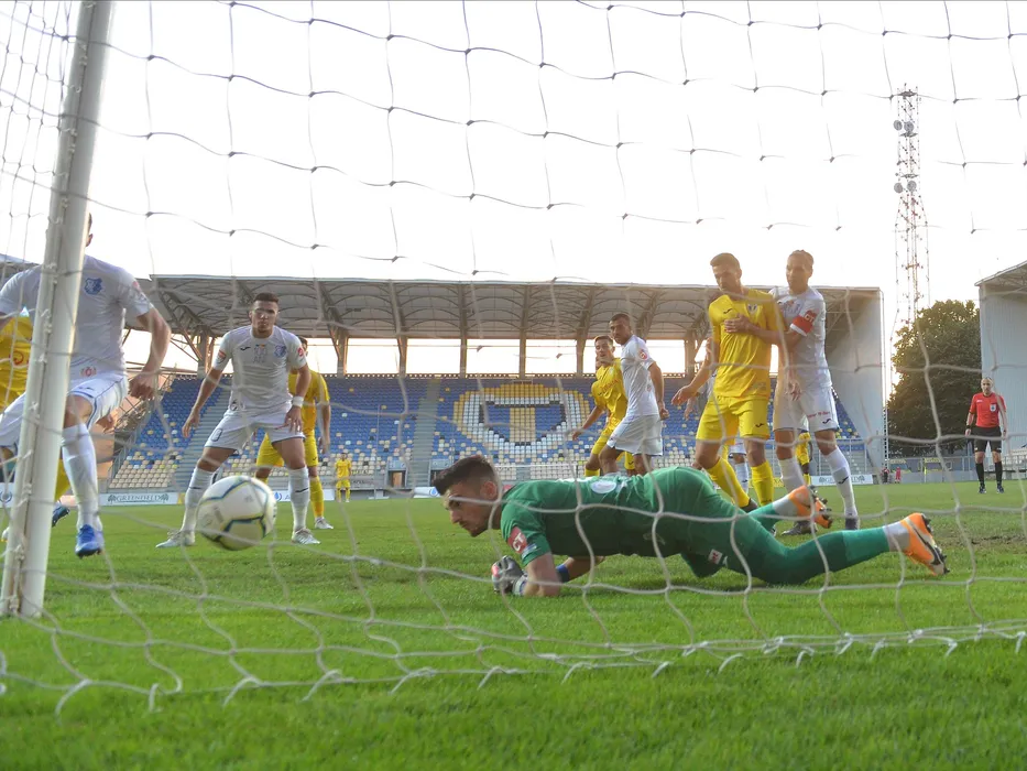 Andrei Eduard Udeanu la faza golului Petrolului in meciul de fotbal dintre Petrolul Ploiesti si Farul Constanta, contand pentru Liga a-2-a Casa Pariurilor, desfasurat fara spectatori pe Stadionul Ilie Oana din Ploiesti, marti 1 septembrie 2020. © FOTO:Razvan Pasarica/SPORT PICTURES