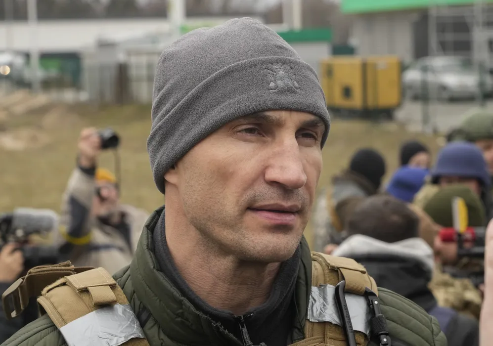 Ukrainian heavyweight boxing world champion Wladimir Klitschko stands at a checkpoint in Kyiv, Ukraine, Sunday, March 6, 2022. On Day 11 of Russia's war on Ukraine, Russian troops shelled encircled cities, and it appeared that a second attempt to evacuate civilians from the besieged port city of Mariupol had failed due to continued violence. (AP Photo/Efrem Lukatsky)