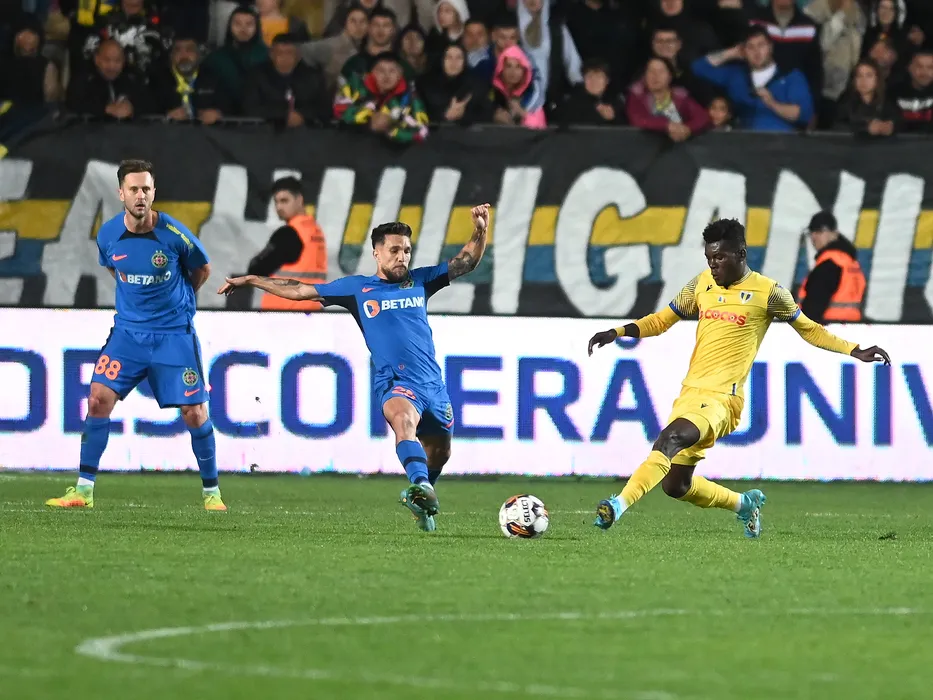 Damjan Djokovic Alexandru Mihail Baluta si Seniko Romeo Doua in meciul de fotbal dintre Petrolul Ploiesti si FCSB, din cadrul Superligii Superbet, desfasurat pe Stadionul Ilie Oana din Ploiesti, sambata 28 octombrie 2023. © FOTO:Razvan Pasarica/SPORT PICTURES