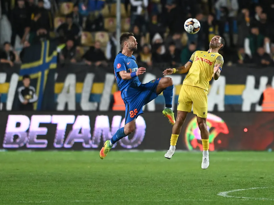 Damjan Djokovic si Giorgi Abuashvili in meciul de fotbal dintre Petrolul Ploiesti si FCSB, din cadrul Superligii Superbet, desfasurat pe Stadionul Ilie Oana din Ploiesti, sambata 28 octombrie 2023. © FOTO:Razvan Pasarica/SPORT PICTURES