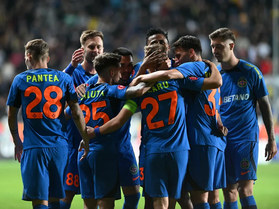 Bucurie a fotbalistilor stelisti dupa un gol marcat cu Alexandru Mihail Baluta, Damjan Djokovic, Adrian Gheorghe Sut, Siyabonga Ngezana, Risto Radunovic si David Raul Miculescu in meciul de fotbal dintre Petrolul Ploiesti si FCSB, din cadrul Superligii Superbet, desfasurat pe Stadionul Ilie Oana din Ploiesti, sambata 28 octombrie 2023. © FOTO:Razvan Pasarica/SPORT PICTURES