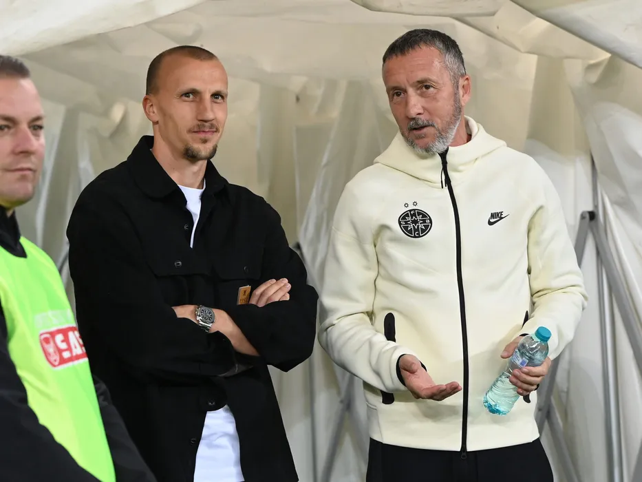 Vlad Iulian Chiriches si Mihai Stoica discuta la meciul de fotbal dintre FCSB si Rapid Bucuresti, din cadrul Superligii Superbet, desfasurat pe Arena Nationala din Bucuresti, duminica 5 noiembrie 2023. © FOTO:Razvan Pasarica/SPORT PICTURES